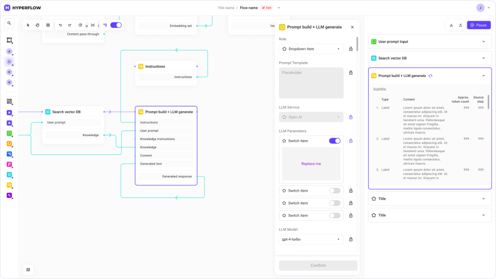 HyperFlow 만의 독창적인 벡터 데이터베이스 시각화 기능은 각 데이터 세그먼트 간의 거리와 유사성을 통해 서로의 관계를 보여 줍니다. 이를 통해 더욱 직관적이고 효율적인 의사결정을 내릴 수 있도록 도와줍니다.